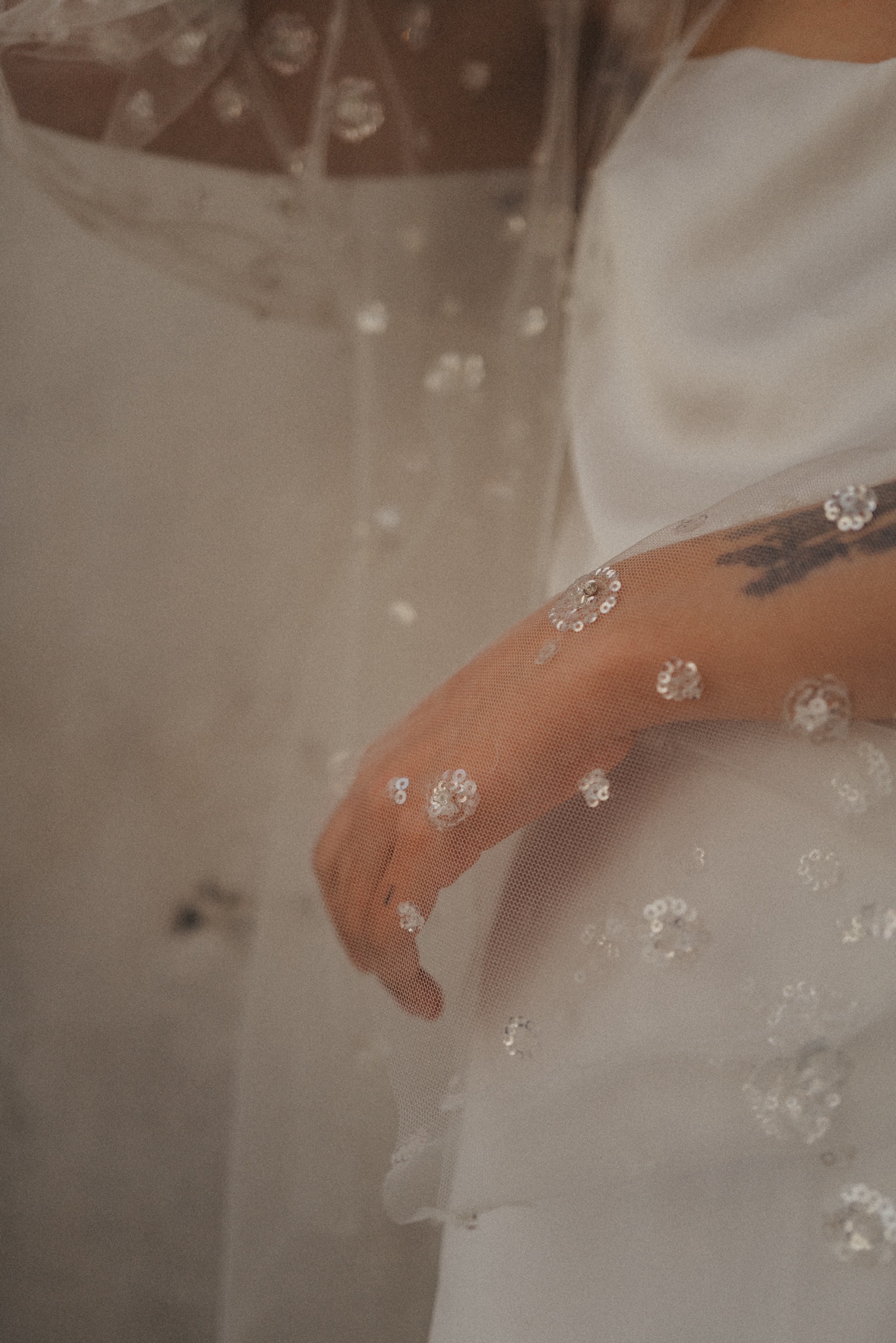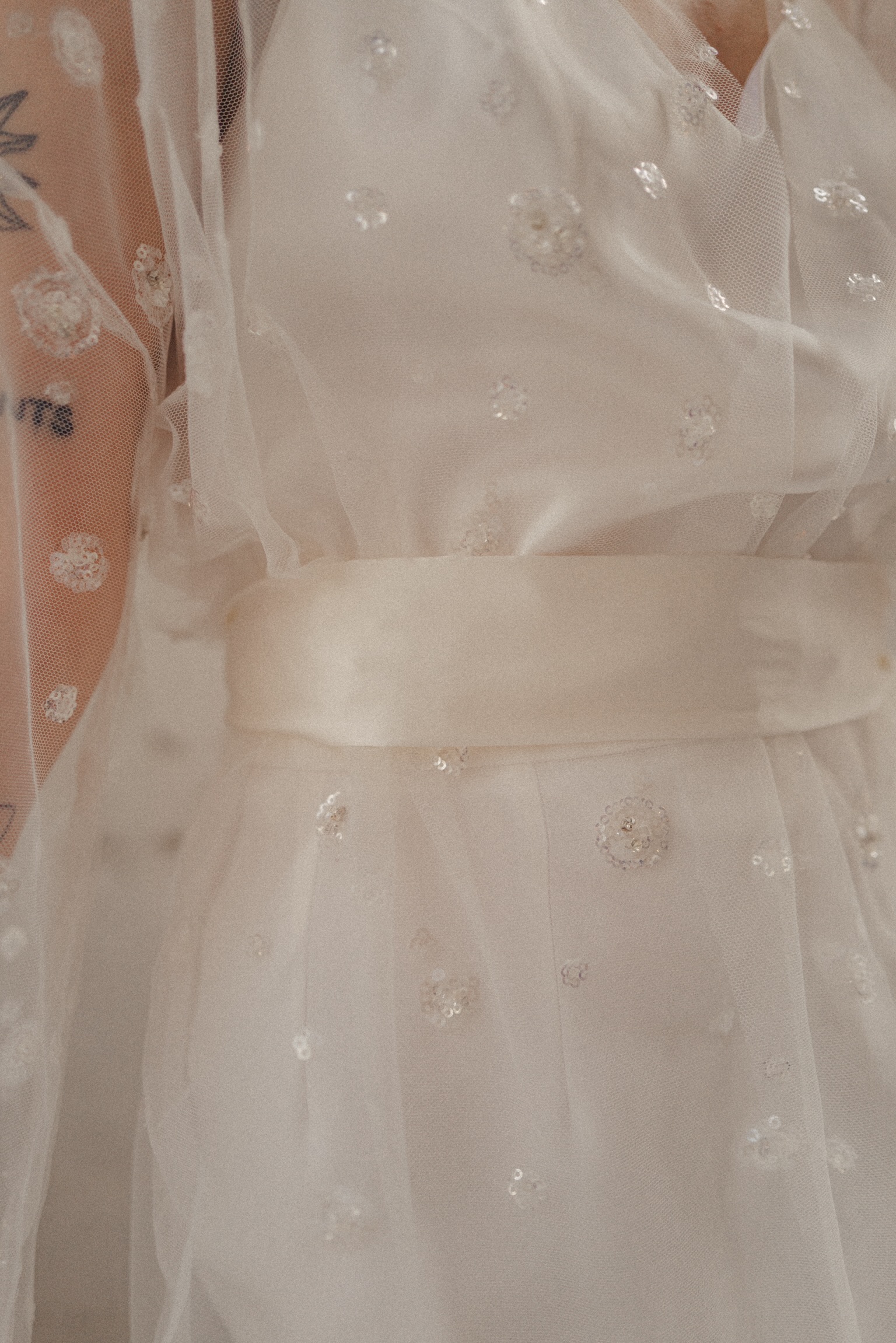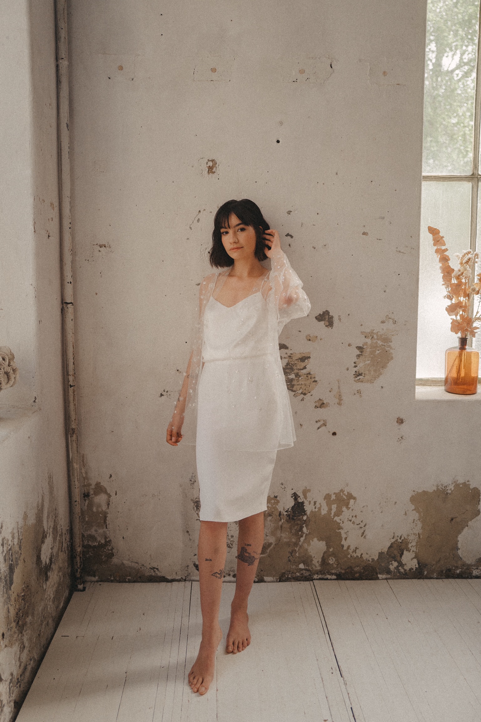 THOE Kimono court en tulle brodé de perles et sequins. Thoe ou comment porter des paillettes toute sa vie ! Prendre rendez-vous