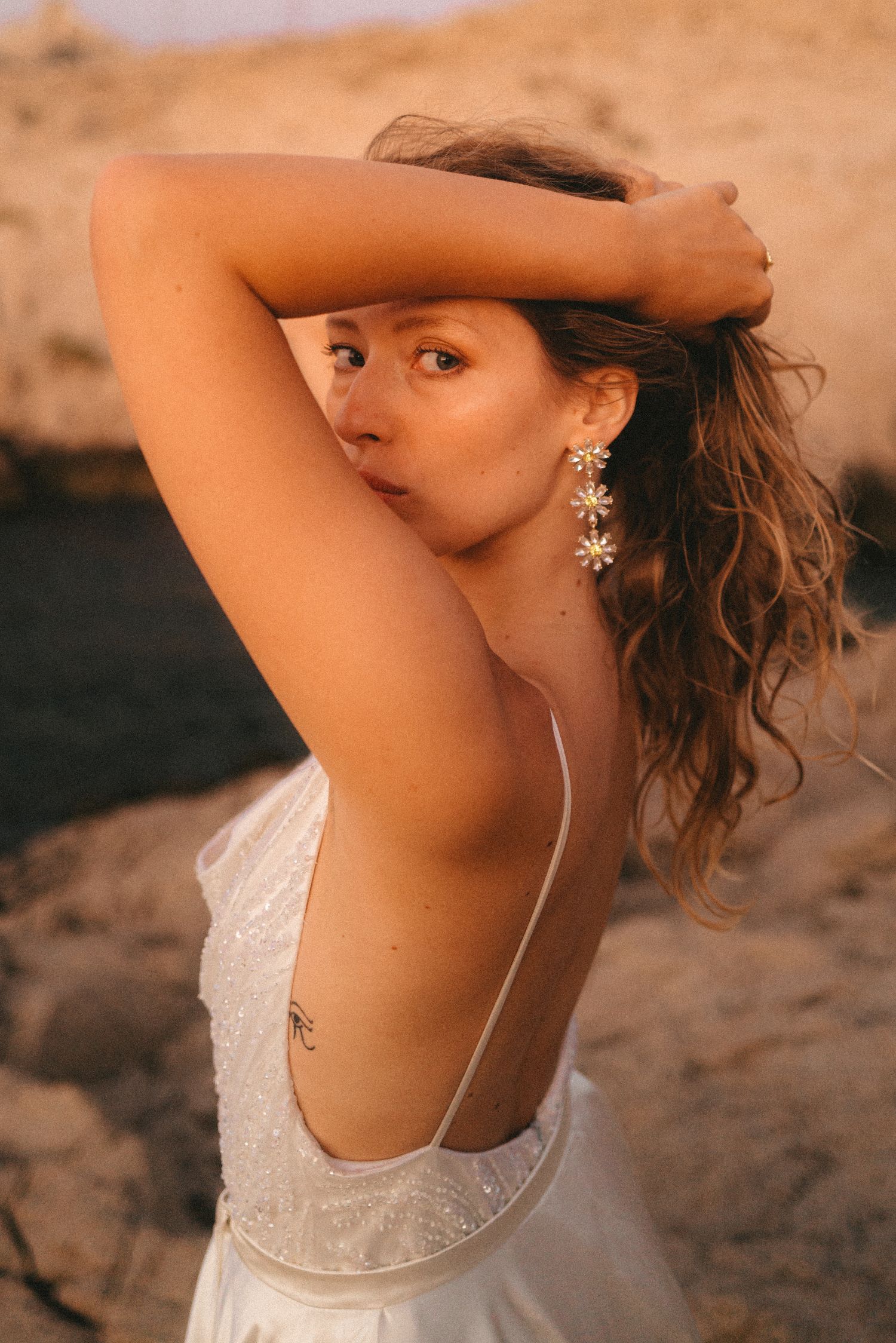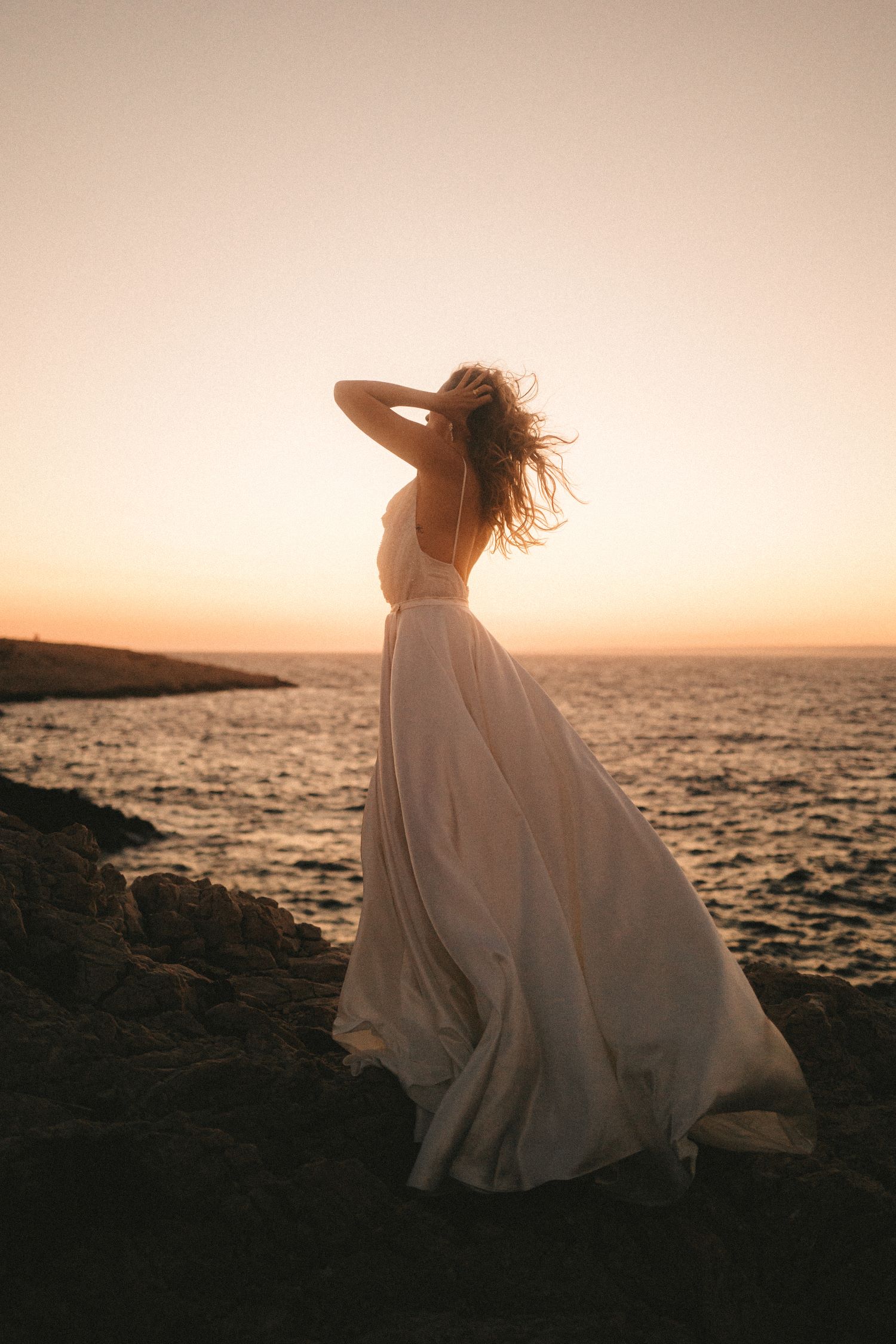 Euphoria est sublimée par des matières d'exception comme le crêpe satin et le tulle brodée de perles et sequins.